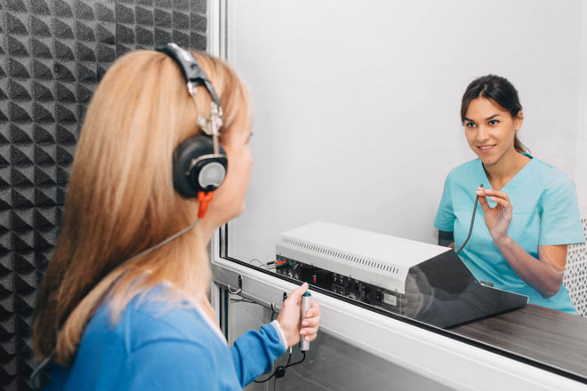 In order to diagnose hearing loss, your audiologist will review your medical history, discuss your symptoms, physically examine your ears and complete a hearing evaluation consisting of a series of audiological tests. A hearing exam may involve one or more of the following: